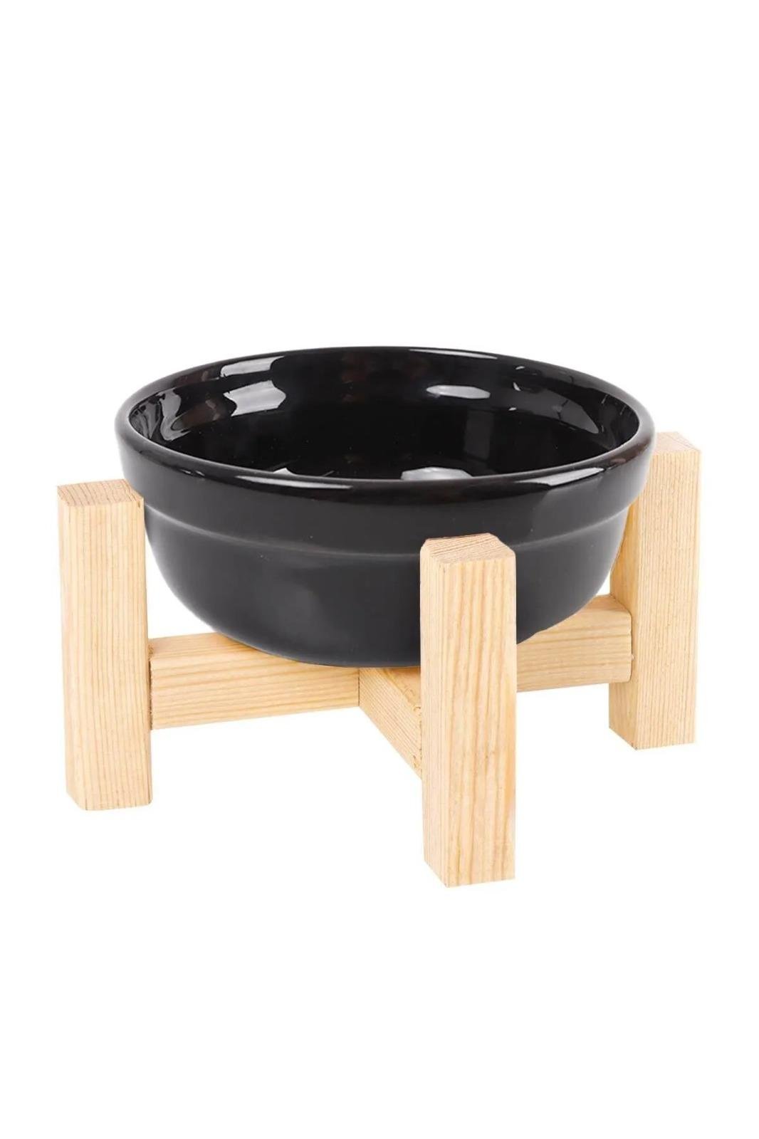 Ahşap Standlı Seramik Dekoratif Kedi Köpek Mama Ve Su Kabı