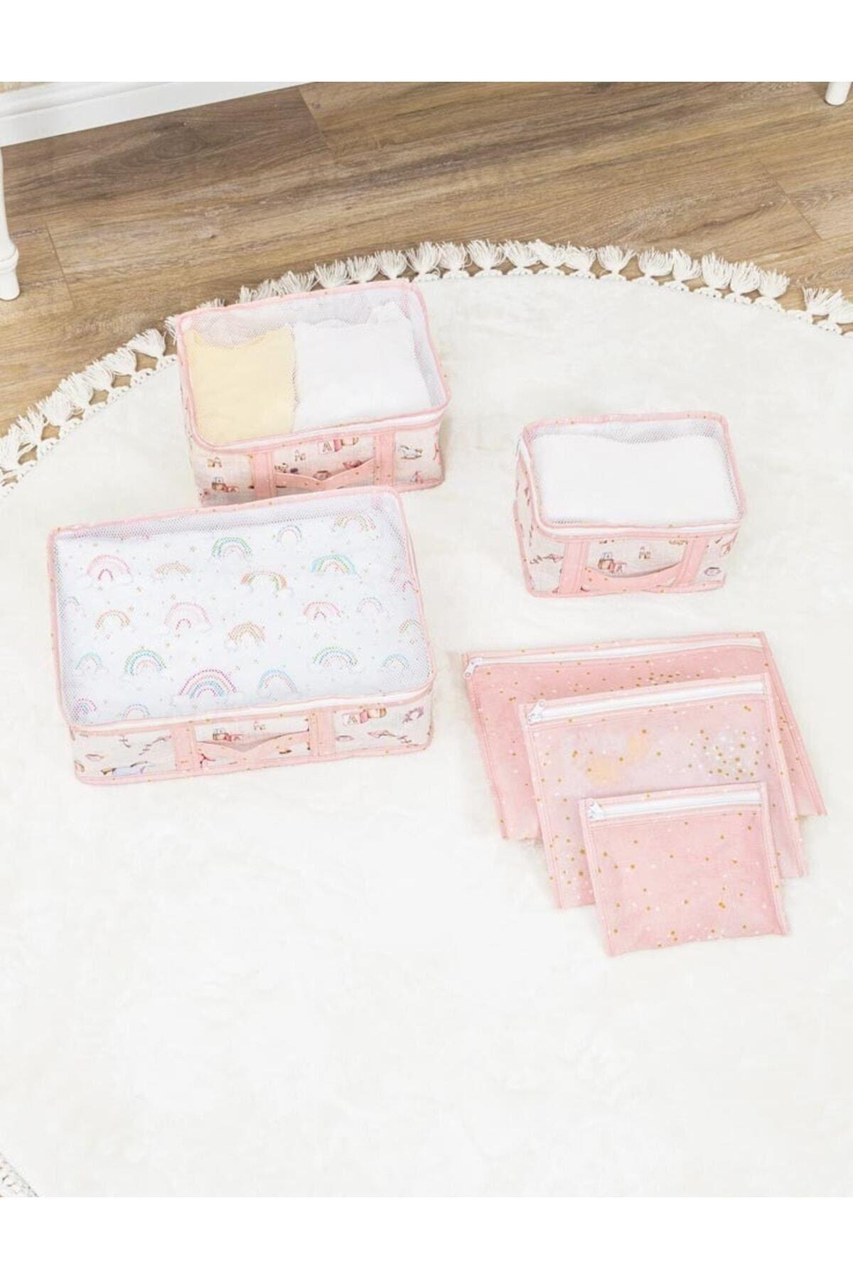 Baby 6 Lı Seyahat Seti / Hurcu, Bavul Düzenleyici, Hastane Çıkışı Seti Pembe