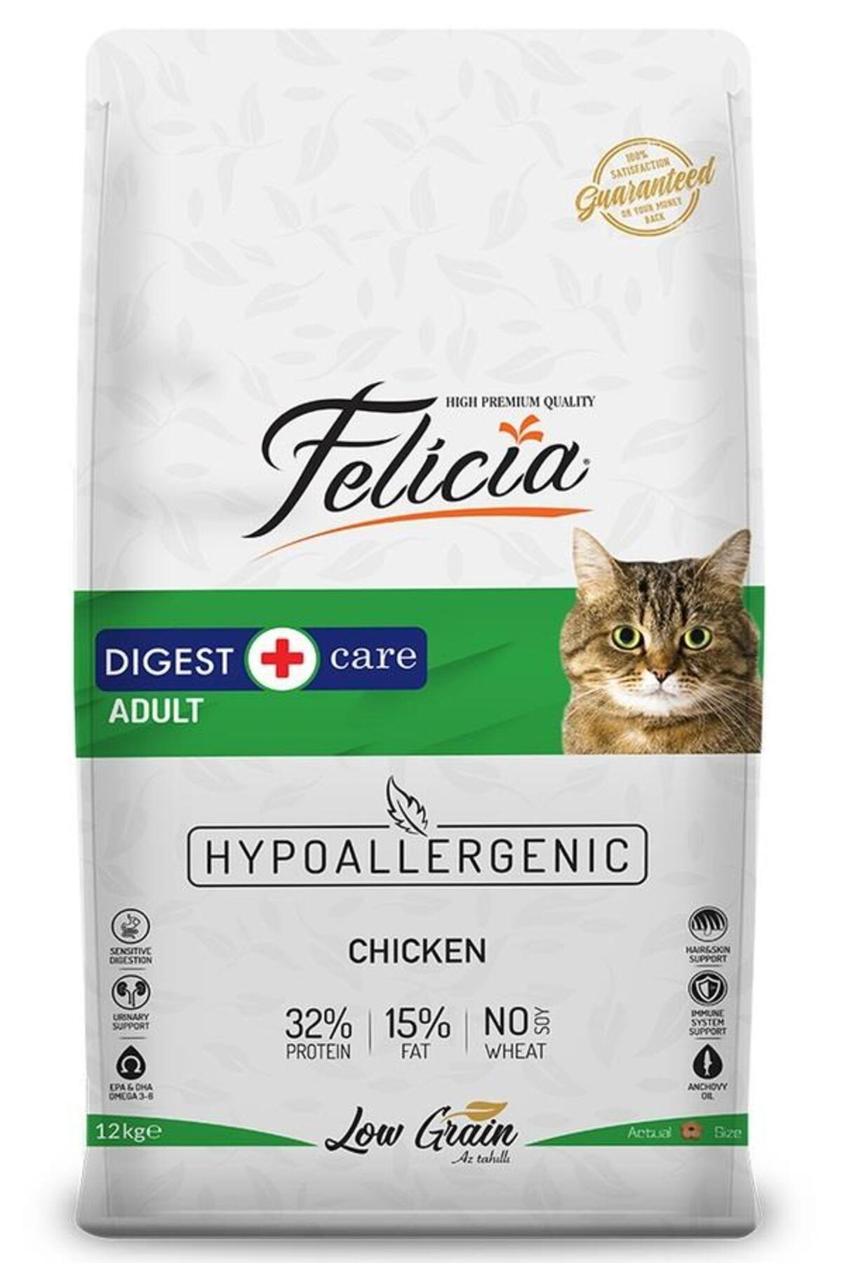 - Felicia® Adult Cat Chicken Neden Az Tahıllı ve HypoAllergenic Felicia® Sevimli dostlarımızın doğal yaşam şartlarına uygun şekilde beslenip, daha sağlıklı yaşayabilmeleri için beslenme uzmanlarımızla birlikte, tahıl oranı düşürülmüş hypoallergenic özel bir formül hazırladık.
