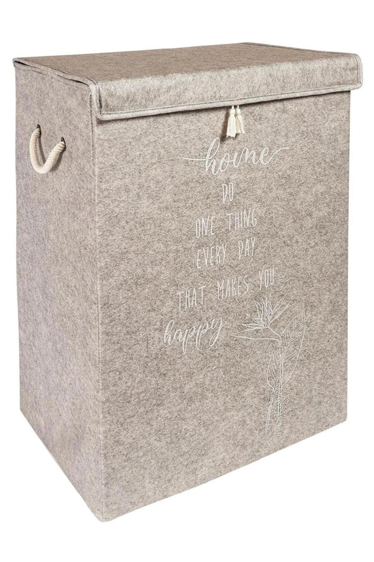 Keçe Kapaklı Kirli Çamaşır Sepeti - Çok Amaçlı Saklama Kutusu Mega Hurç Bej 55 X 41 X 30 Cm