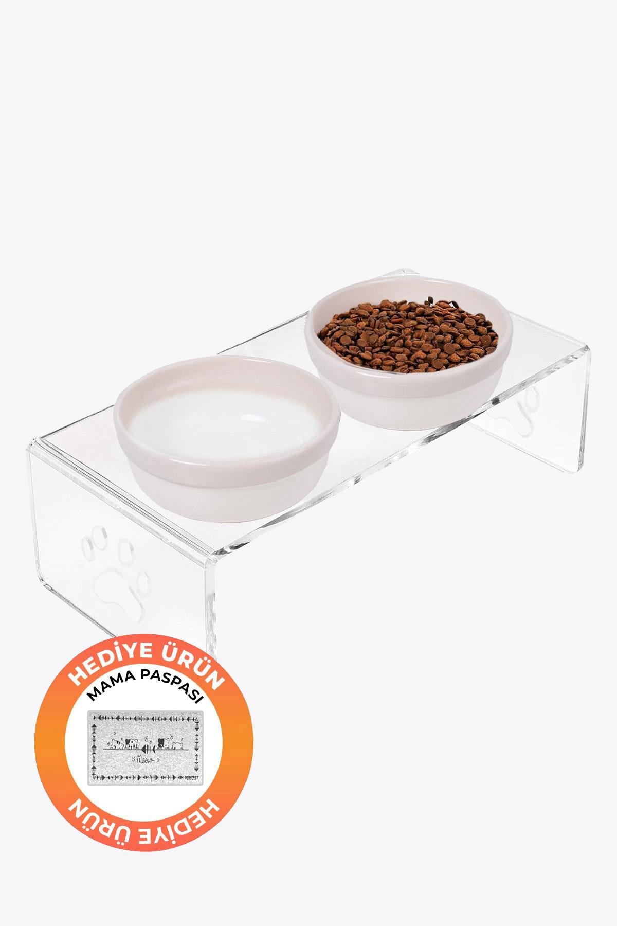 2'li Seramik Dekoratif Kedi Ve Köpek Pleksi Mama & Su Kabı Paspas