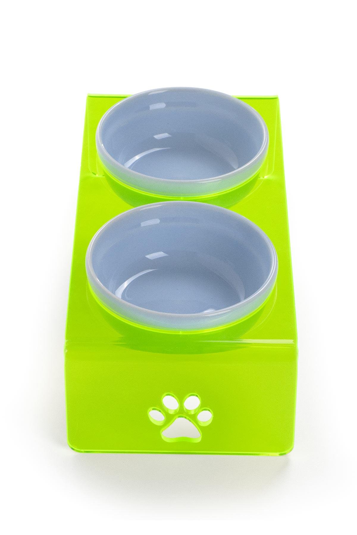 2'li Yeşil Pleksi Dekoratif Kedi Ve Köpek Seramik Mama & Su Kabı Paspas Hediye