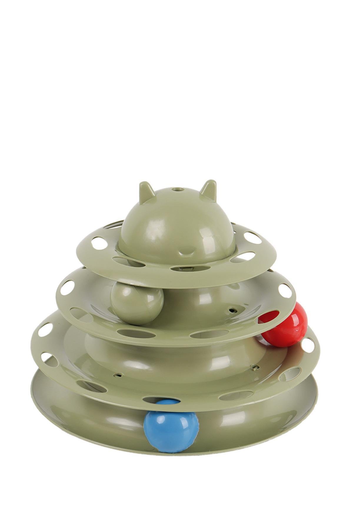 3 Katlı Toplu Yuvarlak Kedi Oyuncağı, Sarma Topu, Haki Yeşili Toplu Yuvarlak Kedi Oyuncağı Kedi Eğlencesi