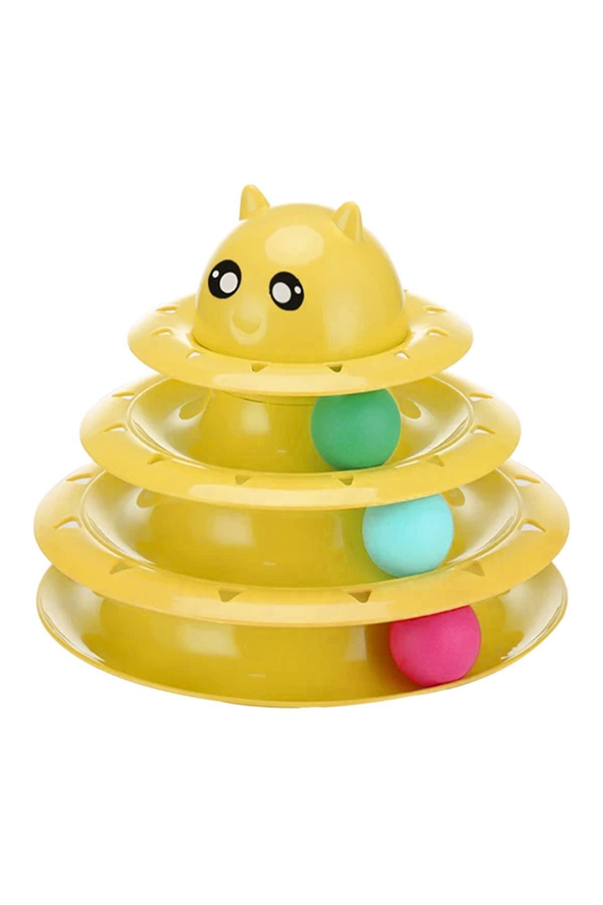 3 Katlı Toplu Yuvarlak Kedi Oyuncağı, Sarma Topu,Sarı Toplu Yuvarlak Kedi Oyuncağı Kedi Eğlencesi