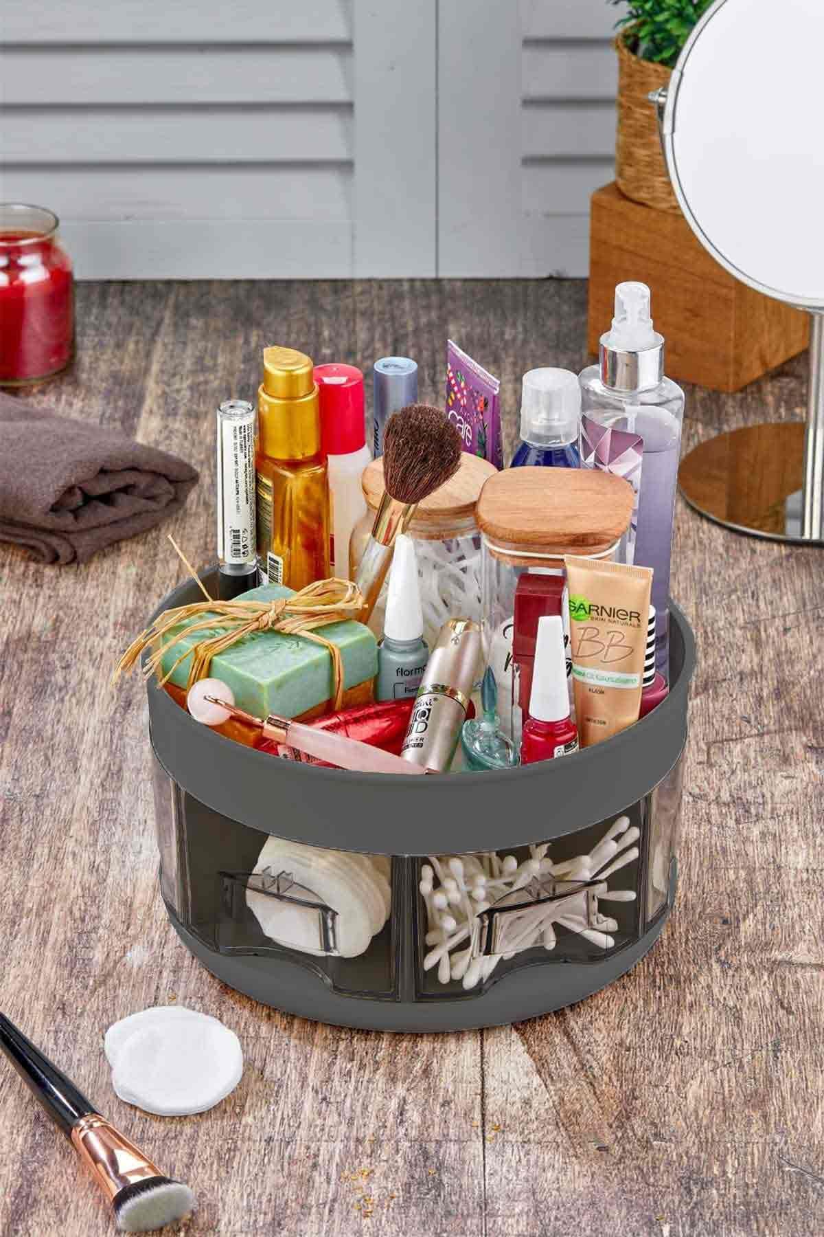 360° Dönebilen 2 Katlı Çekmeceli Mutfak Baharatlık, Banyo Organizeri Ve Düzenleyicisi Antrasit