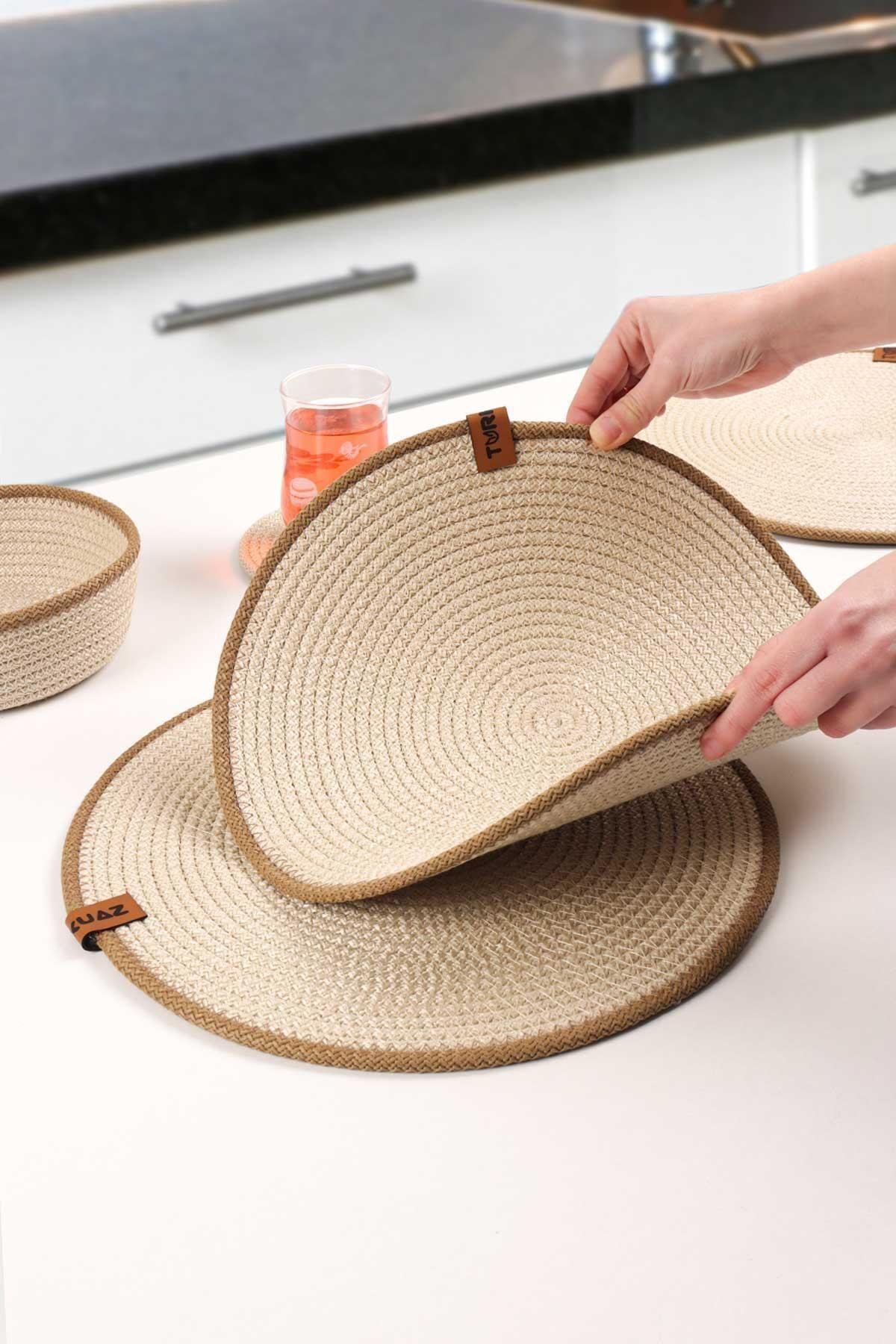 6 Adet Jüt Supla / Amerikan Servis Lux Sunum Tabak Altlığı, Sunum Supla Çeyiz Takımı Örgü Tabak Altı Yanmaz