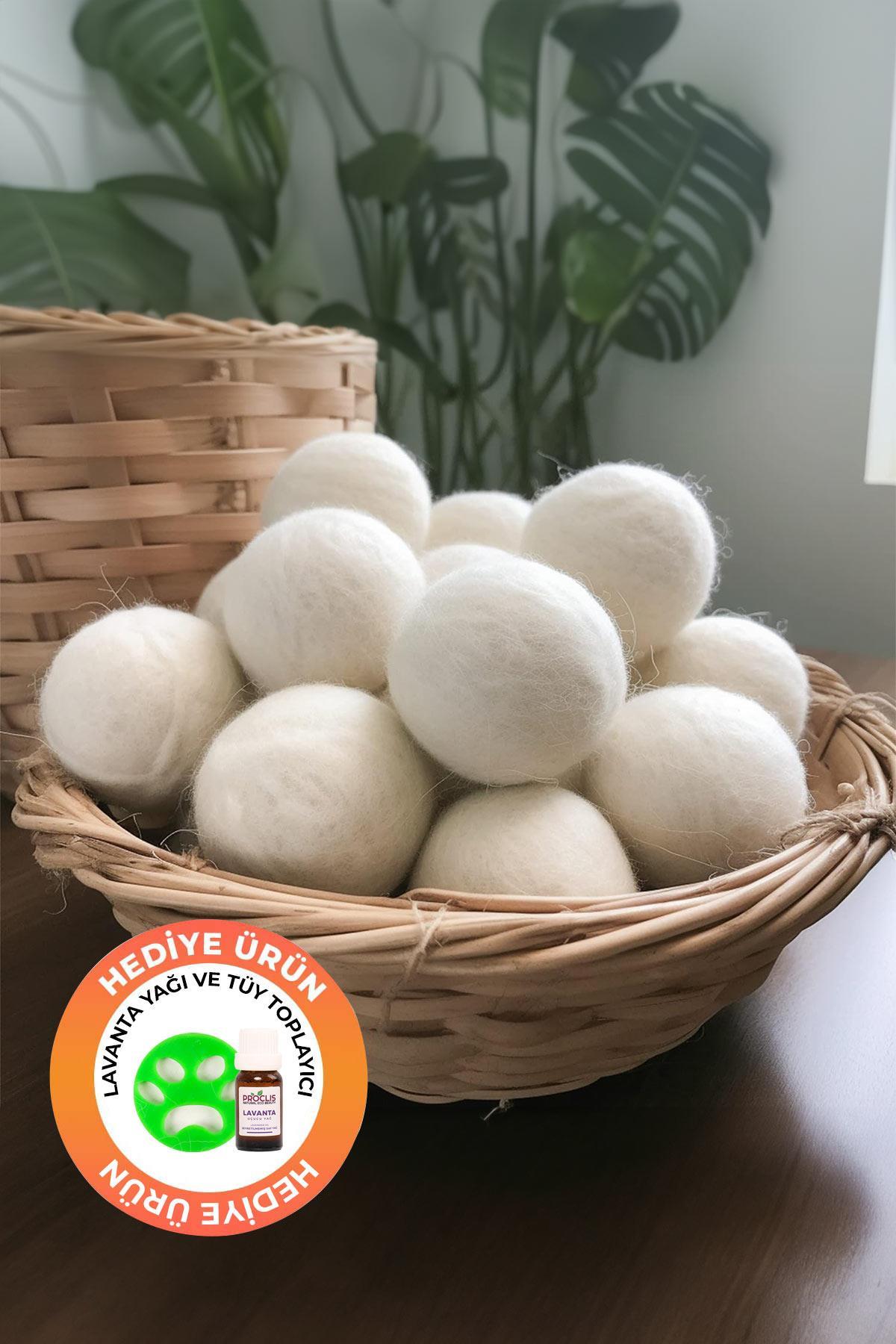 9'lu Yün Kurutma Topu Doğal Çamaşır Yumuşatıcı - Keçe Kurutma Makinası Topları - Kırışık Önleyici, Lavnata Yağ Hediye