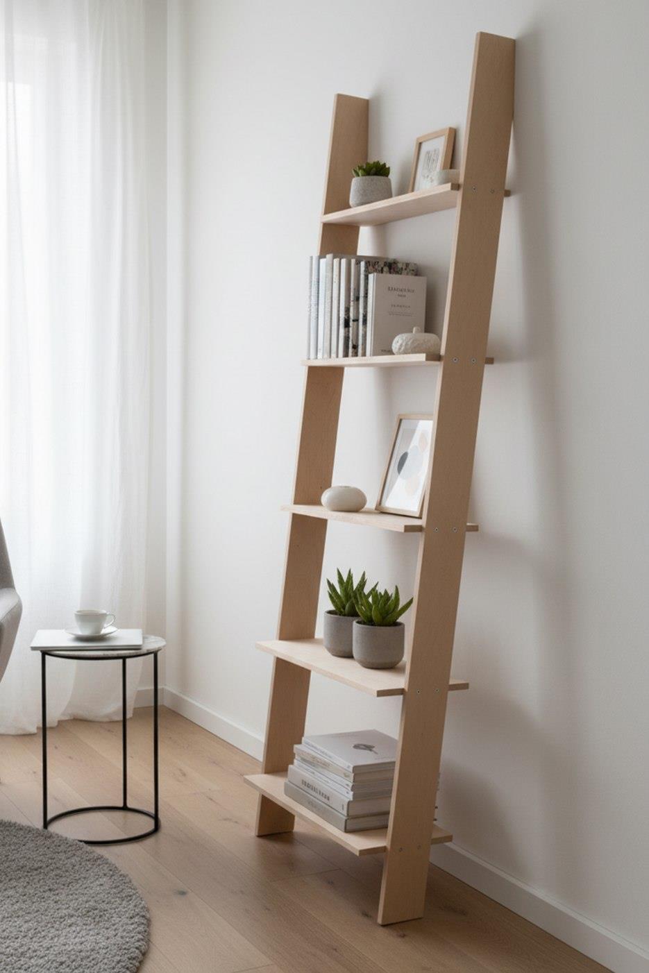 Ahşap Merdiven 5 Raflı Kitaplık, Dekoratif Düzenleyici