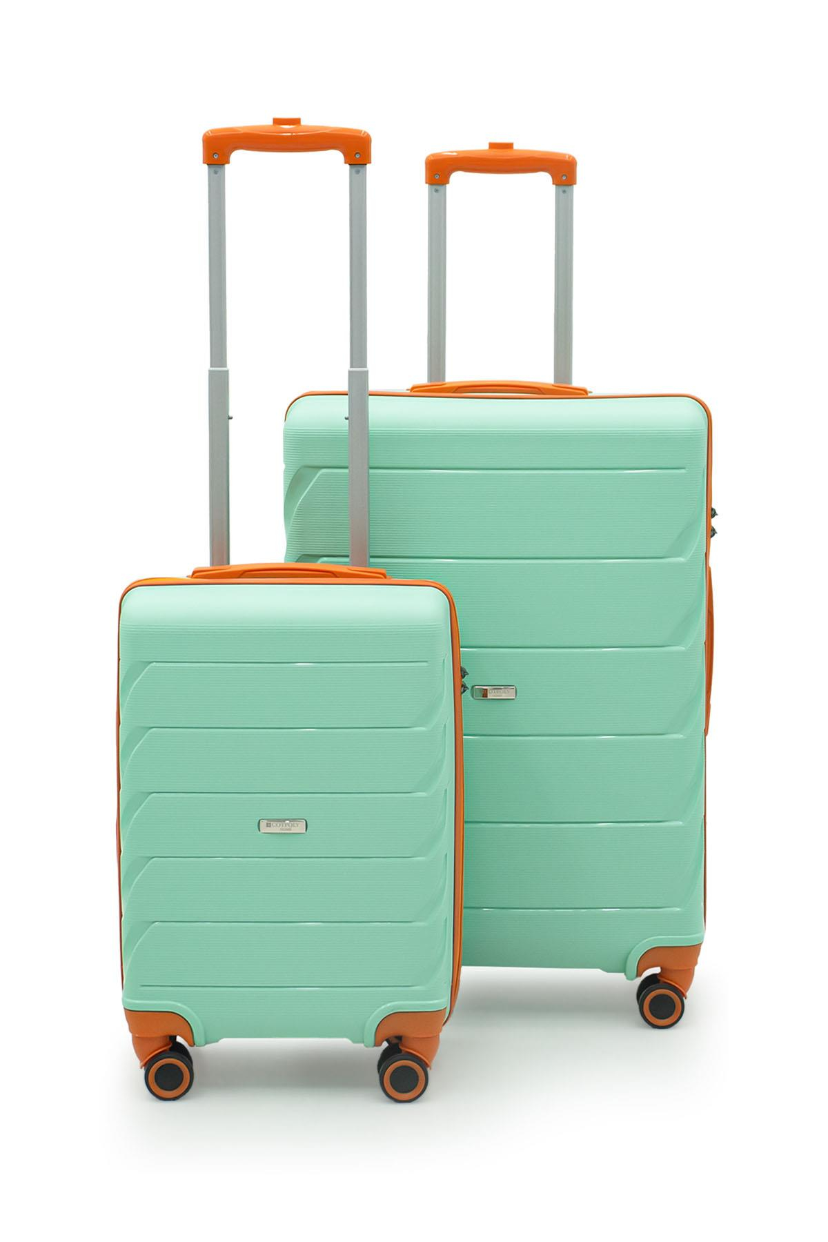 Copella Polipropilen & Kırılmaz 2'li Valiz Seti Büyük & Kabin - Su Yeşili (PKT-005161-005159-Su Yeşili )