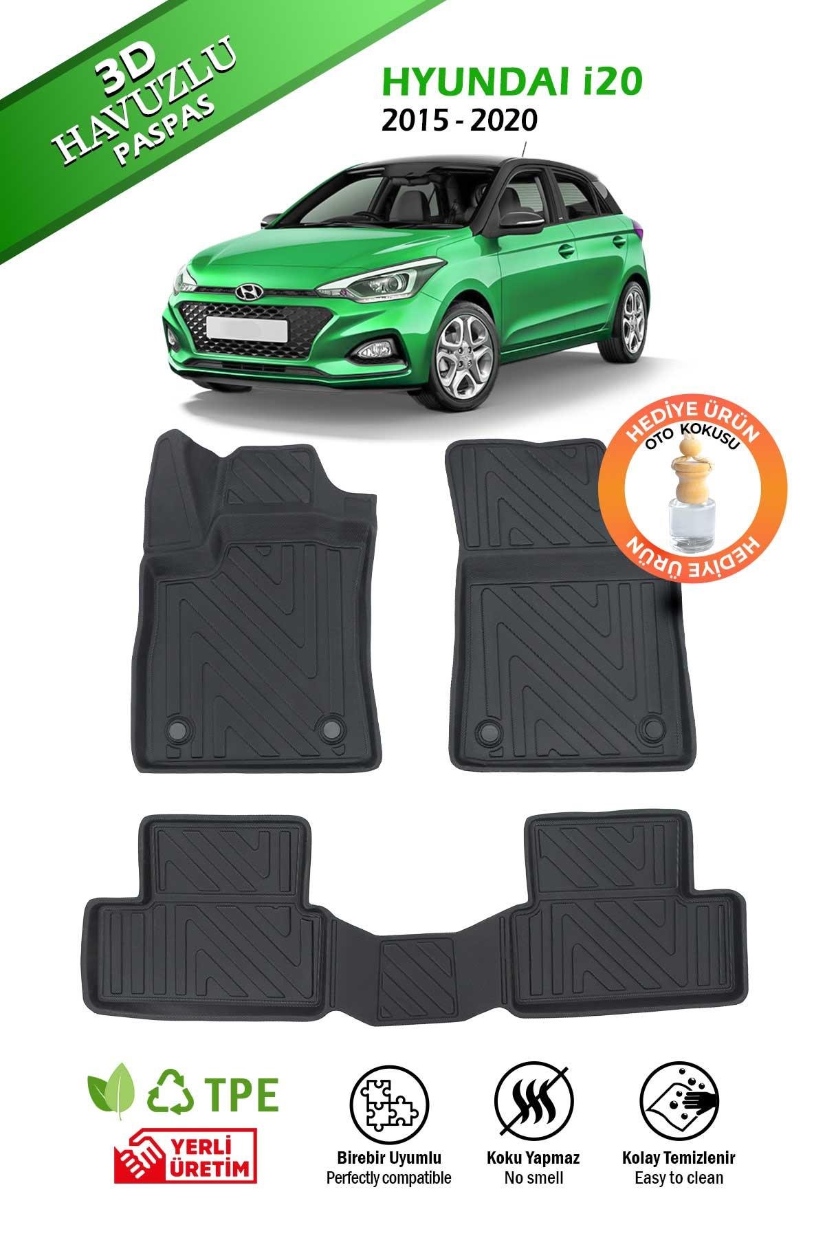 Havuzlu 3d Siyah Paspas Takımı, HYUNDAI i20 , 2015-2020 Arası 3d Havuzlu Paspas, HediyeAraç Kokusu;