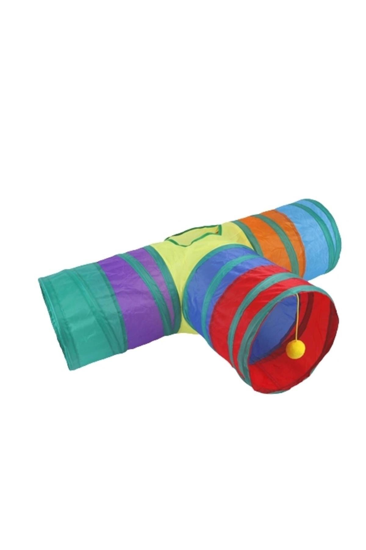 Katlanabilir 3 Yönlü Kedi Oyun Tüneli 80 Cm Gökkuşağı 2112