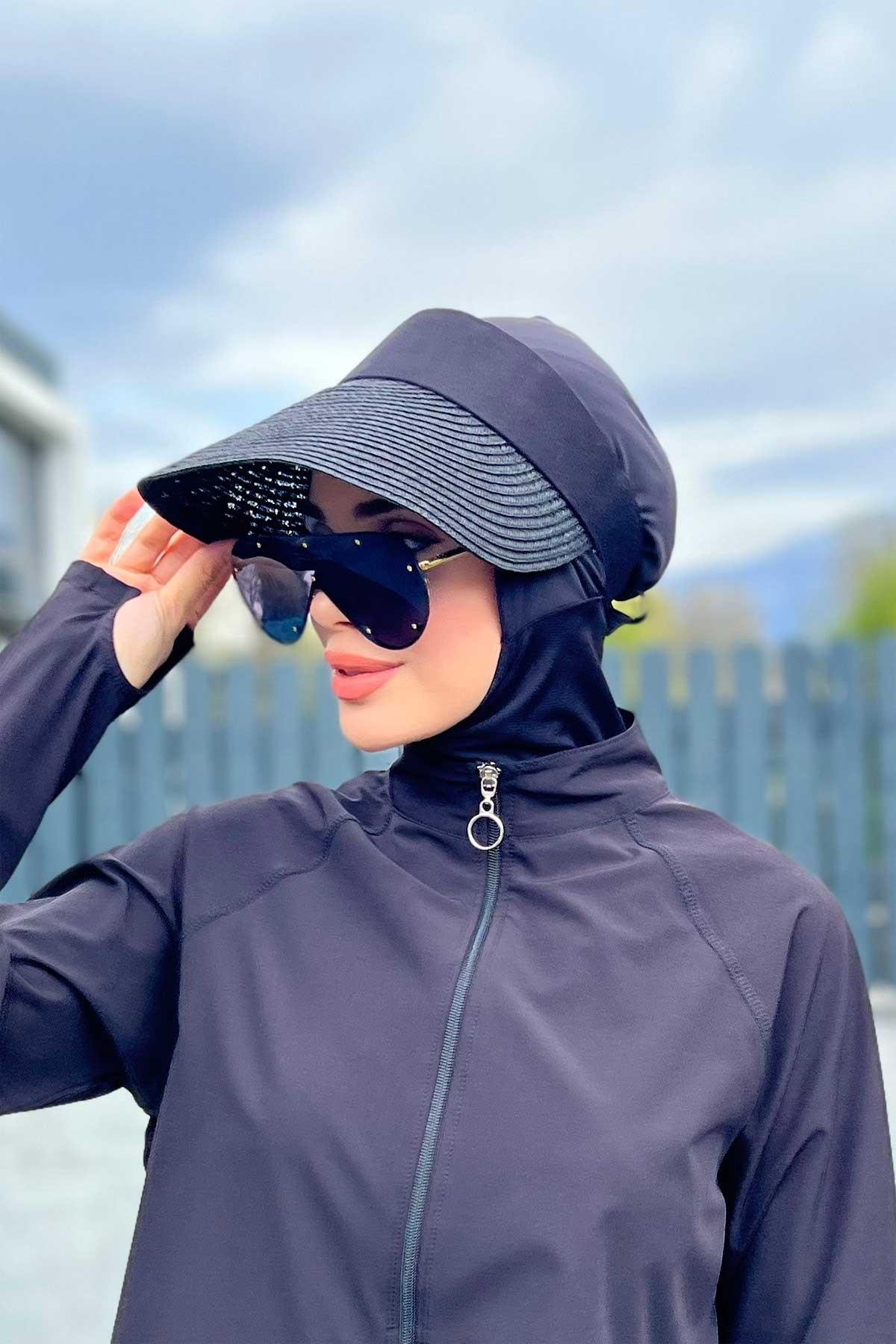 Katlanır Vizör Hasır Şapka Güneş Koruyucu Siperlik Siyah Rş-43