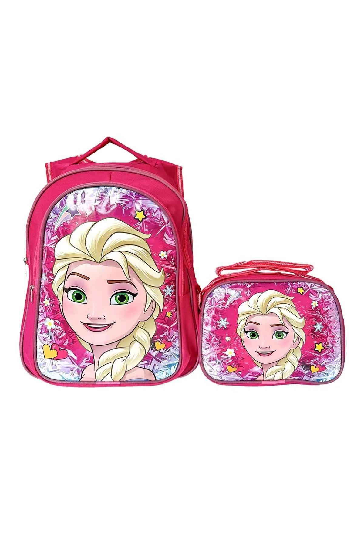 Kız Çocuk Full Pembe Tek Elsa Figürlü ilkokul Anaokulu Beslenme Ve Okul Çantası Seti