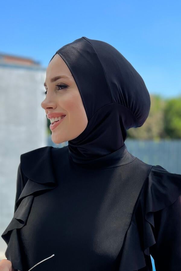Çapraz Eşarp Yüzücü Bone R026 Siyah