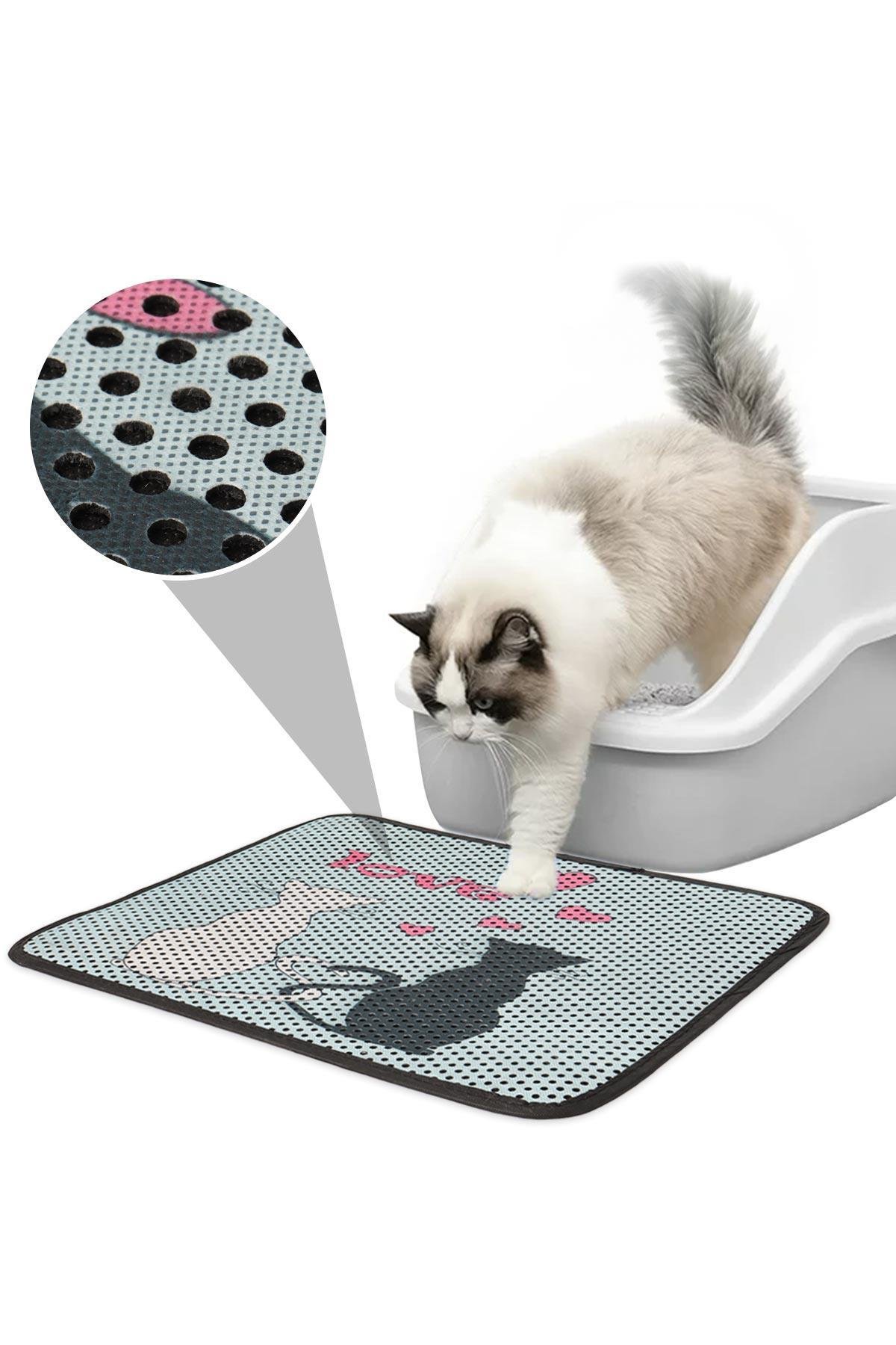 Renkli Desenli Elekli Kedi Tuvalet Önü Paspası, Kum Toplayıcı Kedi Halısı, Kedi Paspası Renkli Kedi