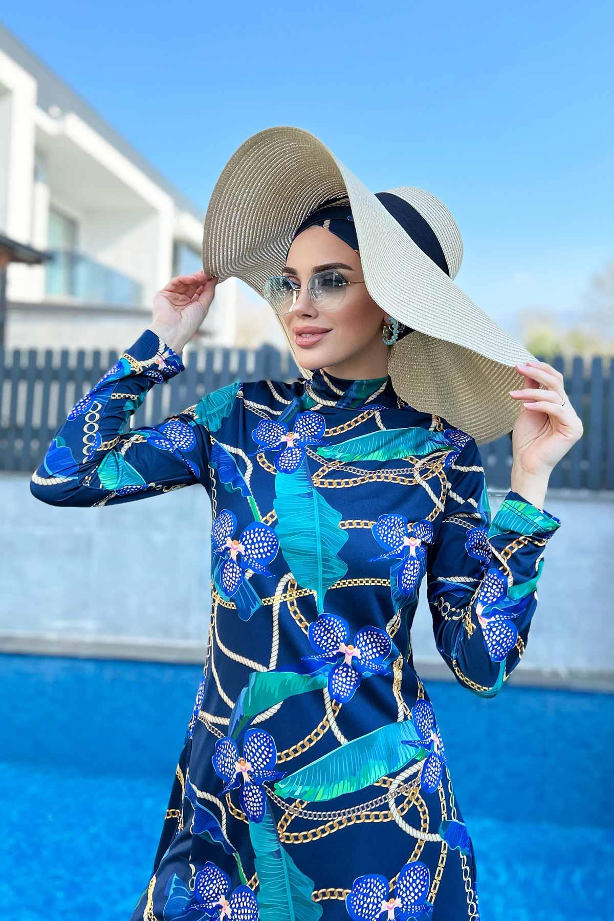 Likralı Tam Kapalı Tesettür Mayo Zincir Orkide R058 Zişan