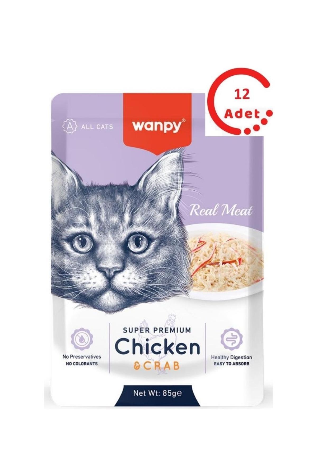 Wanpy Pouch Tavuklu & Yengeçli Yaş Kedi Maması 85 gr x 12 Adet