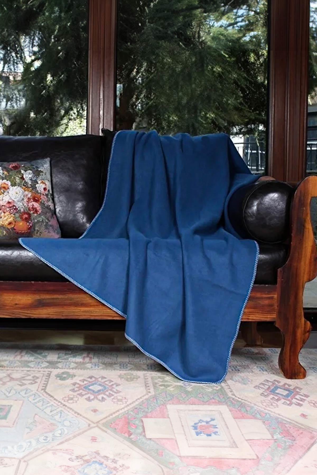 Çift Taraflı Tasarım: Bu battaniye, lacivert ve mavi tonlarının birleşiminden oluşan çift taraflı bir tasarıma sahiptir. Bir tarafı lacivert, diğer tarafı ise mavi renkte olup, her iki renk de ev dekorasyonuna uyum sağlayacak şekilde şıklık katmaktadır.;